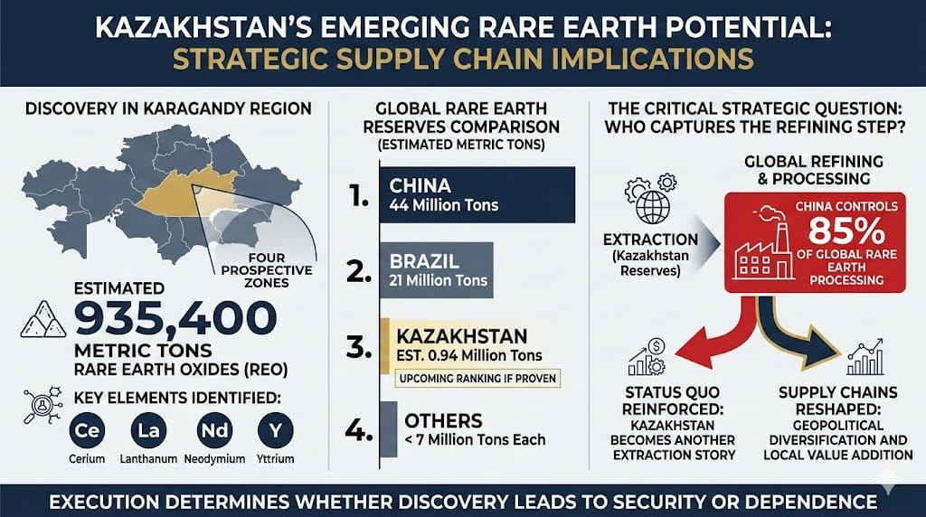 Kazakhstan discovered enough rare earths to rank third in the world. The minerals map has a new heavyweight, though processing questions remain.